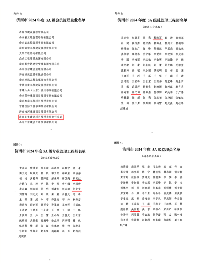 喜報!我司榮獲濟南市2024年度5A級監(jiān)理企業(yè)稱號,多名員工獲評5A級從業(yè)人員